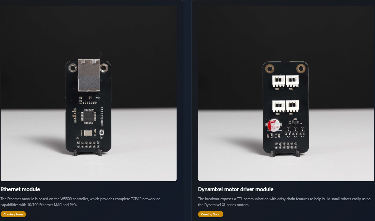 - 또한 Zalmotek은 공식적으로 “W5500 Ethernet Module coming soon”을 발표했으며, 이는 Ethernet 확장이 이 플랫폼의 핵심 기능으로 자리잡고 있음을 보여줍니다.