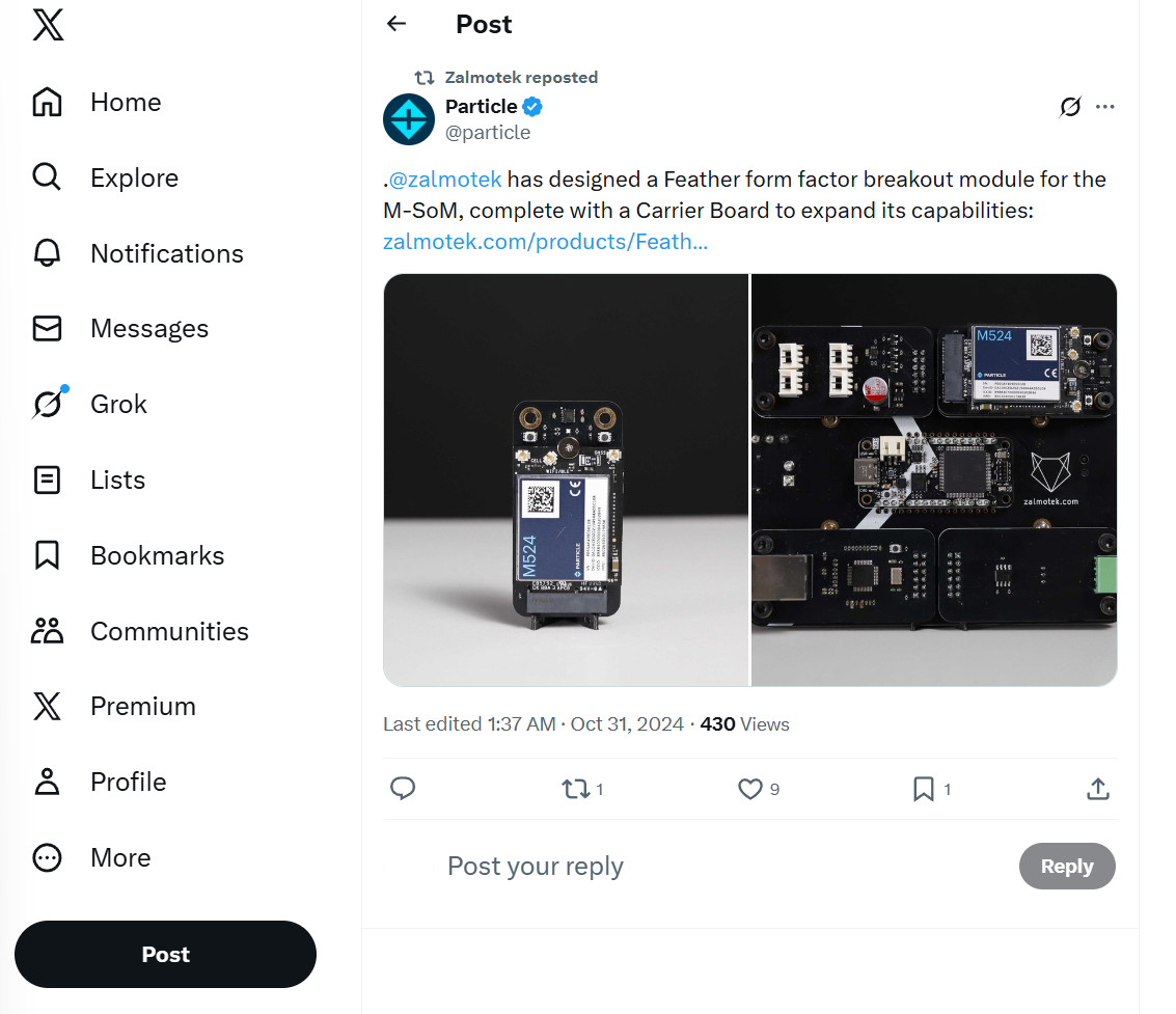Zalmotek has been producing breakout boards based on Particle’s M-SoM module, accompanied by a variety of demos and tutorials created through its own content production service. These materials are promoted not only by Zalmotek but also through Particle’s official social media channels, resulting in strong visibility and outreach.