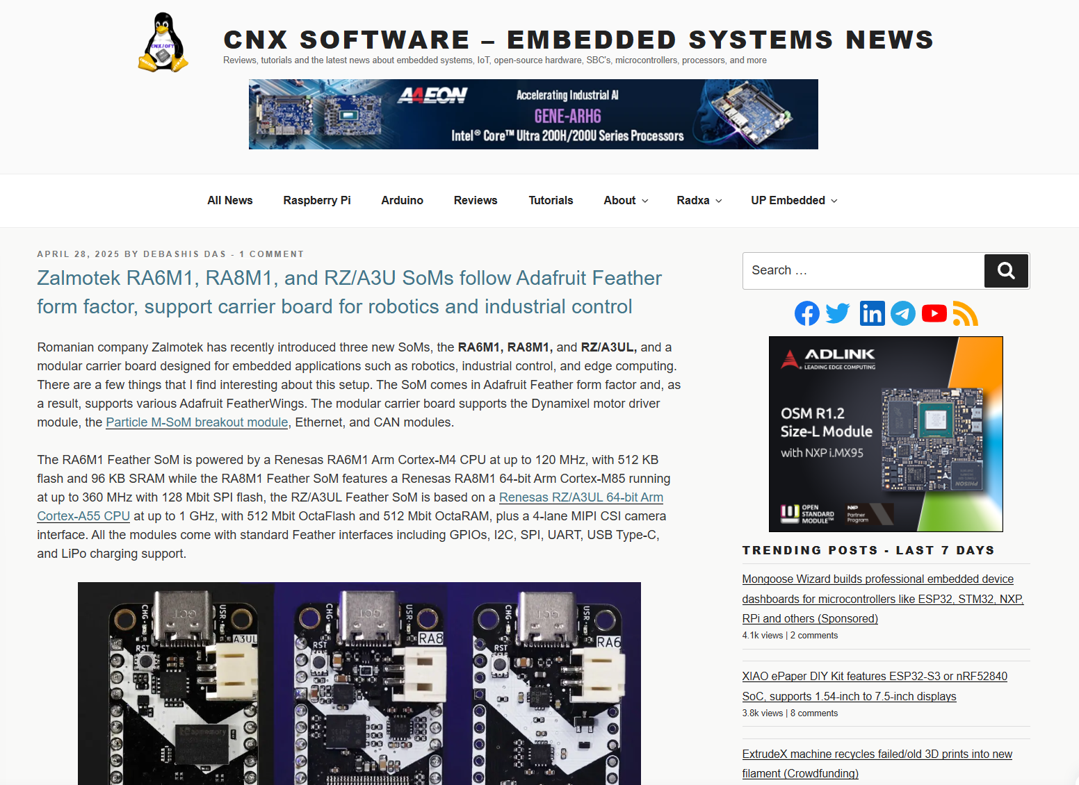 Source : https://www.cnx-software.com/2025/04/28/zalmotek-ra6m1-ra8m1-and-rz-a3u-soms-follow-adafruit-feather-form-factor-support-carrier-board-for-robotics-and-industrial-control/