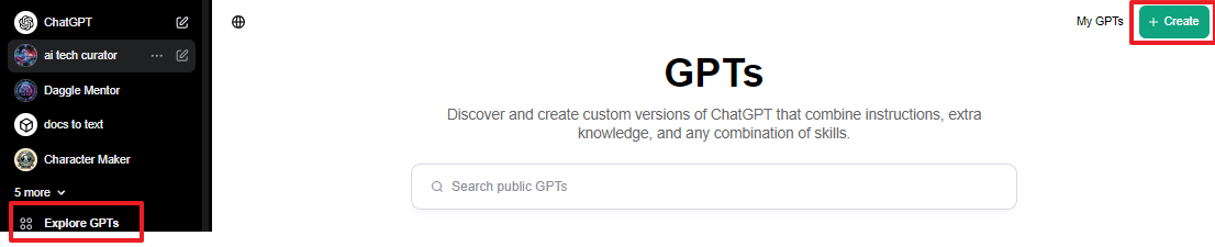 - Initiation: Start by clicking 'Explore → Create a GPT' in ChatGPT.