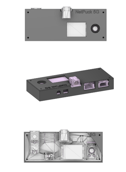 Viewed through the 3D case model (image_6.png), NetPuck 5G demonstrates the completeness of field-ready equipment.