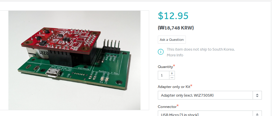 이 어댑터는 Raspberry Pi의 UART(TX/RX) 핀과 직접 연결됩니다. Raspberry Pi는 단순히 시리얼 데이터를 송수신하고, 네트워크 관련 처리는 전부 WIZnet Serial-to-Ethernet 모듈이 담당합니다. 즉, Raspberry Pi 입장에서는 이 장치가 “네트워크 장비”가 아니라 “시리얼 장치”처럼 보이기 때문에, 운영체제나 드라이버 설정 부담이 매우 적습니다.
