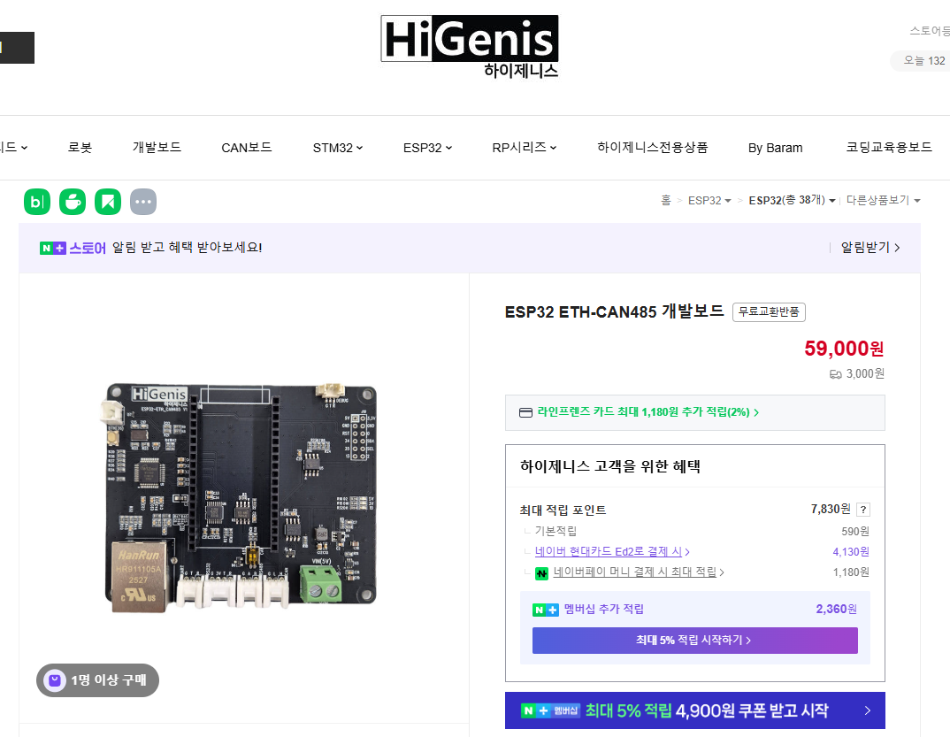 기존 ESP32 개발 시 CAN이나 RS485를 쓰려면 별도의 '쉴드'나 '모듈'을 점퍼 케이블로 연결해야 하는 번거로움이 있었습니다.