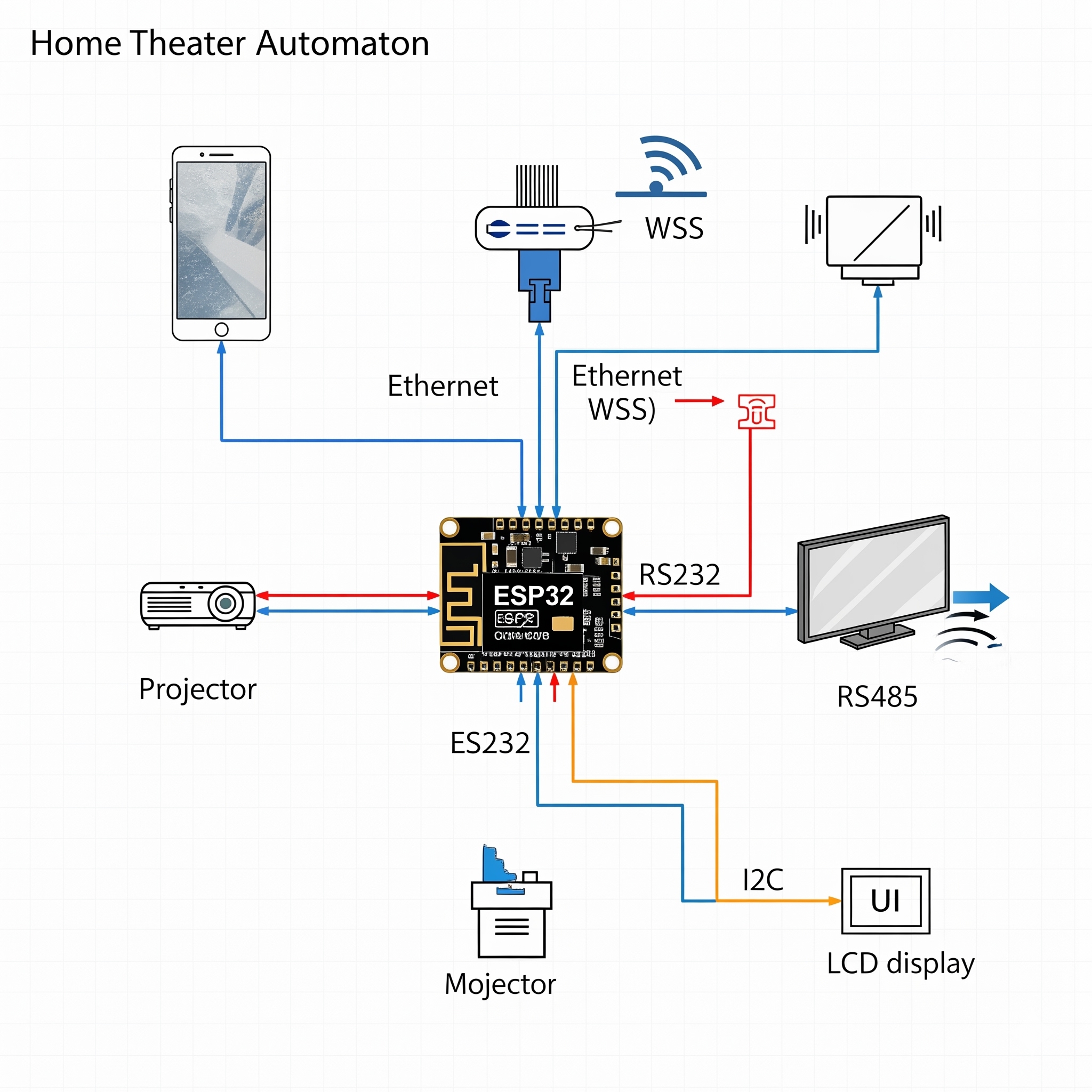 This repository implements an ESP32-based home theater controller that relies on a hardwired Ethernet link (WIZnet W5500 over SPI)