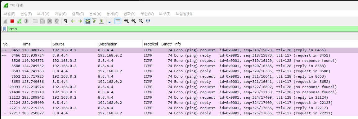Since we conducted a ping test, we can check ICMP in wireshark.