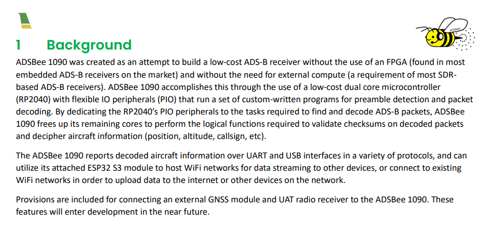 ADSBee 1090은 복잡하고 비싼 기존 ADS-B 수신기를 더 단순하고 저렴하게 만들기 위해 시작된 프로젝트입니다.