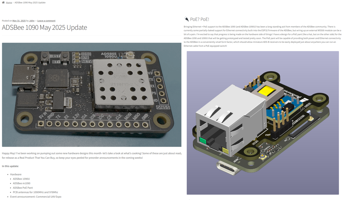 2025년 5월에는 ADSBee PoE Pant 확장 보드가 공개되었습니다.