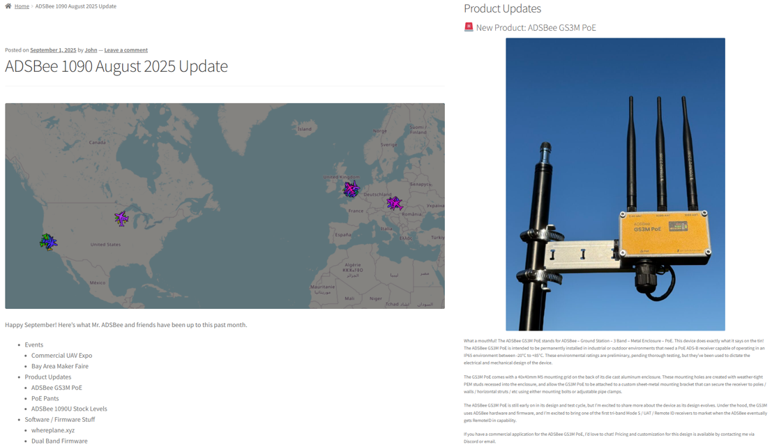 In the August 2025 update, the ADSBee GS3M PoE model was released.
