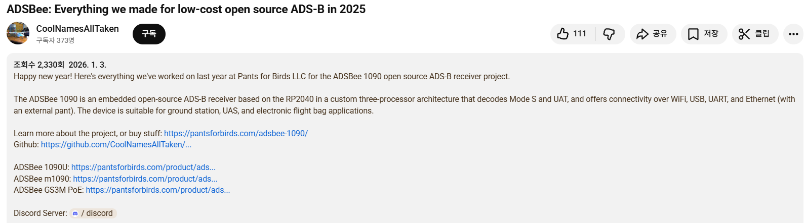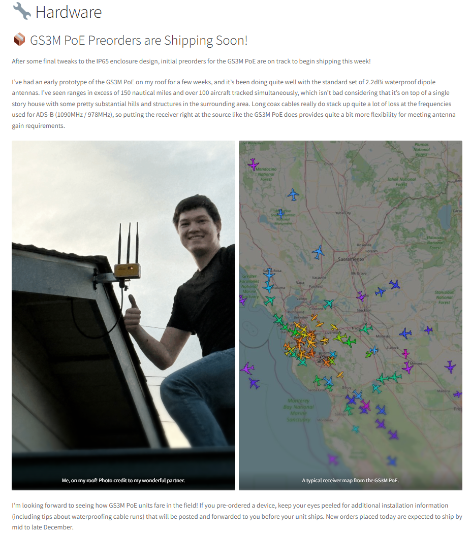 2025년 11월에는 ADSBee GS3M PoE를 실제 설치 환경에 배치한 테스트 결과가 공유되었습니다.
