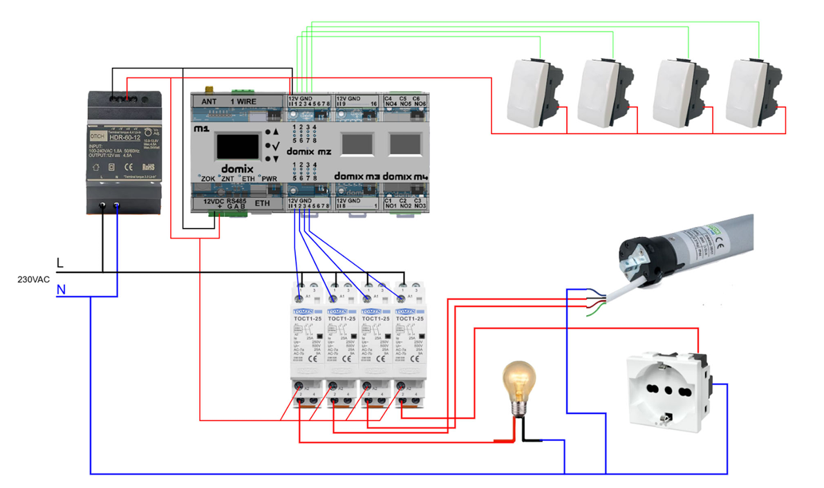 DOMIX is an open-source modular home automation system based on an ESP32-S3 central controller.