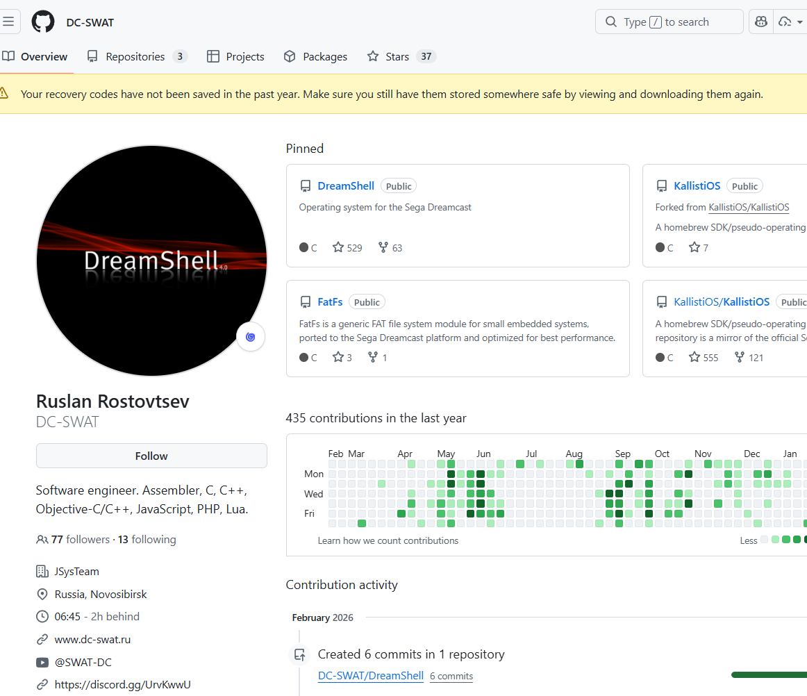 해당 프로젝트를 개발한 DC-SWAT는 DreamShell과 KallistiOS 등 Dreamcast 관련 주요 프로젝트에 지속적으로 기여해 온 개발자입니다.