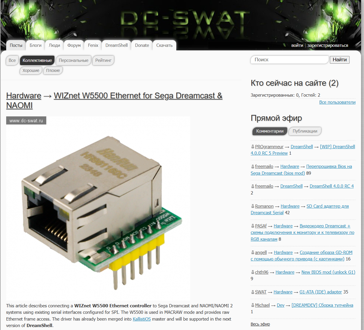 Through PR, official support for the WIZnet W5500 network adapter was incorporated into the KallistiOS project, and support was also extended in the DreamShell project to enable operation of the W5500.