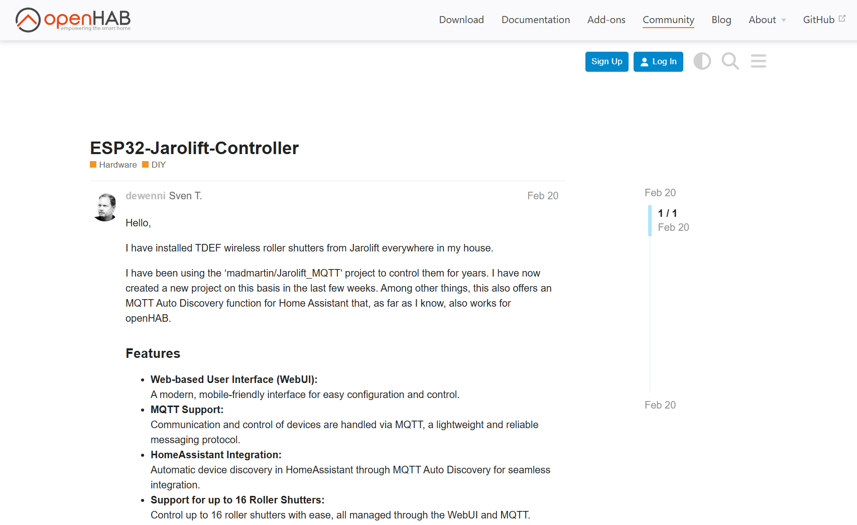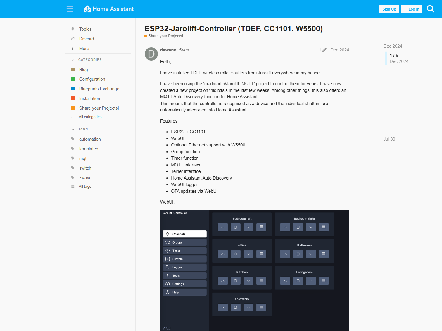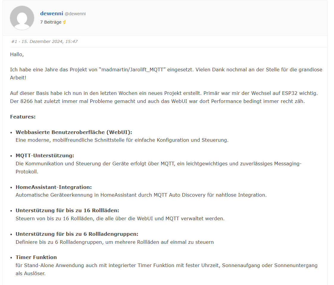 2. https://community.openhab.org/t/esp32-jarolift-controller/162593