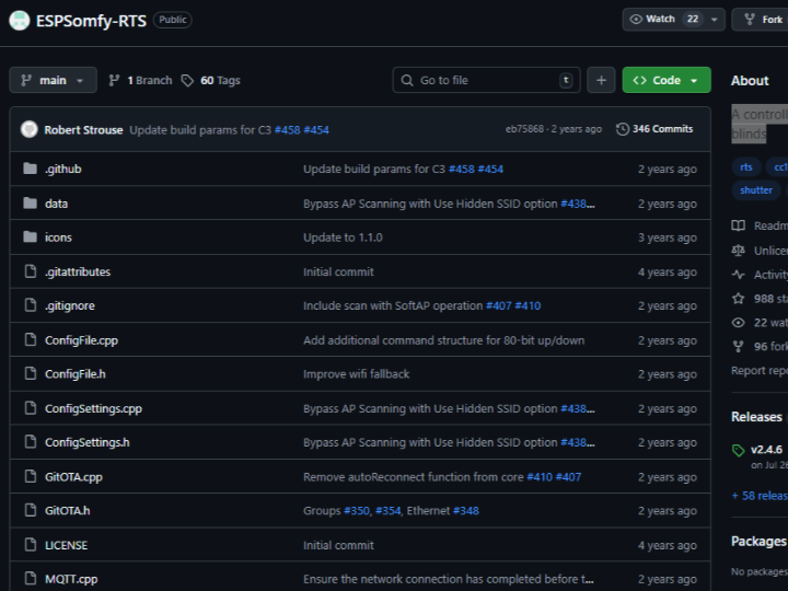 ESPSomfy-RTS A controller for Somfy RTS shades and blinds COMPONENTS Hardware components WIZnet - W5500 x 1 PROJECT DESCRIPTION https://github.com/rstrouse/ESPSomfy-RTS/issues/541https://github.com/rstrouse/ESPSomfy-RTS/pull/633 Documents Comments Write