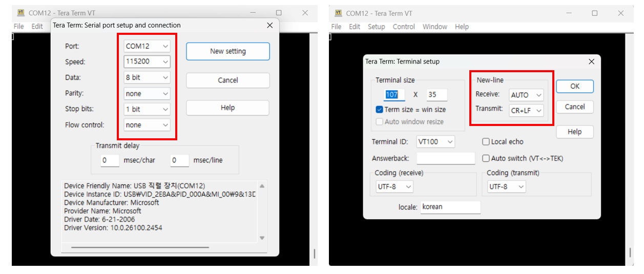 Connect to the serial COM port of the Raspberry Pi Pico using Tera Term.