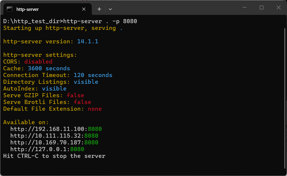 Enter the following commands in a terminal window to start the HTTP server.
