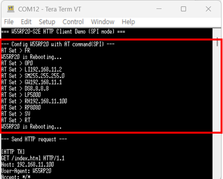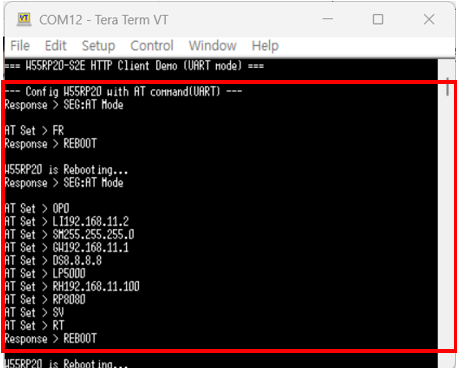 1. Configuring the W55RP20 S2E as a HTTP Client(TCP Client) and Setting Up the Network with AT command.