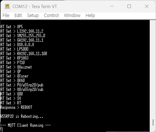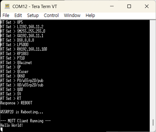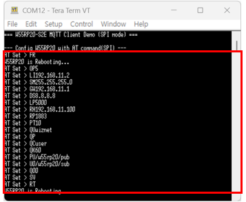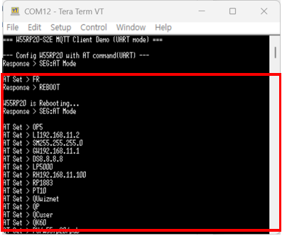1. Configuring the W55RP20 S2E as a MQTT Client and Setting Up the Network with AT command.