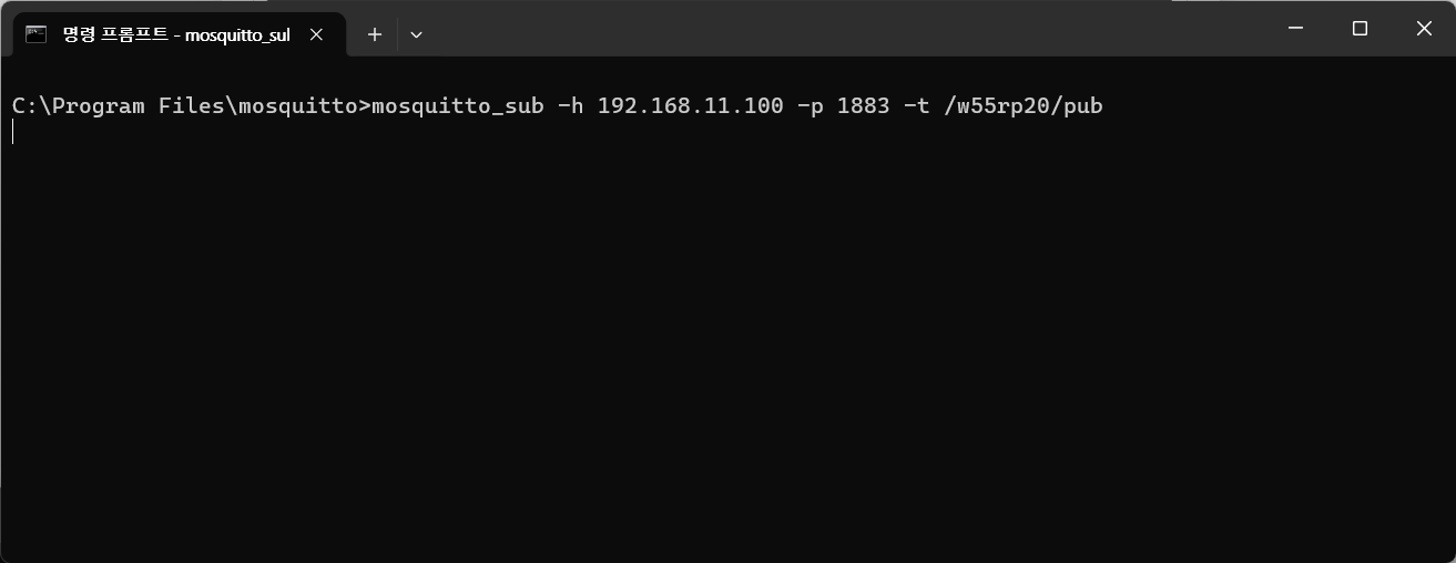 In one terminal window, use the mosquitto_sub command to subscribe to a specific topic.