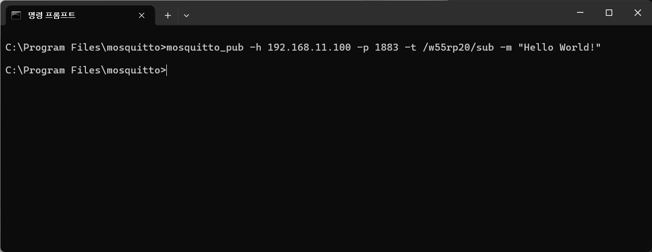 In the other terminal window, use the mosquitto_pub command to publish a message (e.g., “Hello World!”) to the same topic.