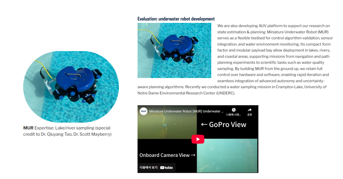 - 수중 로봇 제어/자율주행 연구: 상태 추정, 경로 계획, SLAM 등 학술 연구용 플랫폼으로 검증됨
