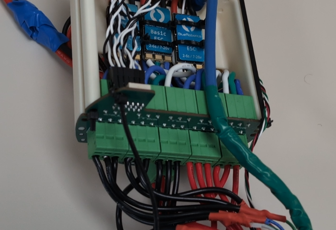 - Distributing power efficiently from the main power source to all thrusters through ESCs.