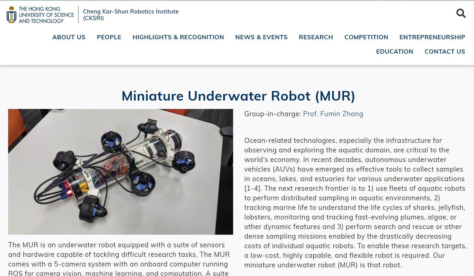 홍콩과기대(HKUST) 해양 로보틱스 연구팀은 MUR을 “향후 수중 학술 연구의 핵심 플랫폼”으로 소개하고 있습니다.