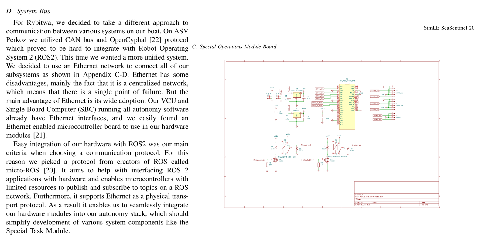To address these issues, the communication structure was completely re-evaluated, and an Ethernet-based system bus was adopted with seamless integration into ROS 2 as the top priority. The fact that both the VCU (Pixhawk) and the onboard SBC already support Ethernet was also a key factor in this decision. - ASV Zimorodek (2025)
