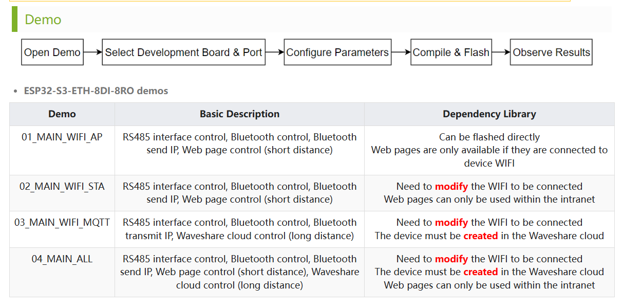 Wiki : https://www.waveshare.com/wiki/ESP32-S3-ETH-8DI-8RO#Demo_2