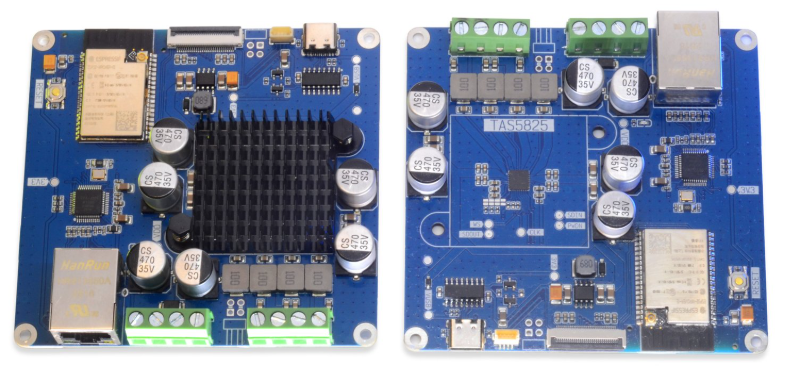 Equipped with the TAS5825M Class-D amplifier, PSRAM, and W5500 Ethernet, it delivers stable wired and wireless streaming along with high-quality output of 25W × 2.