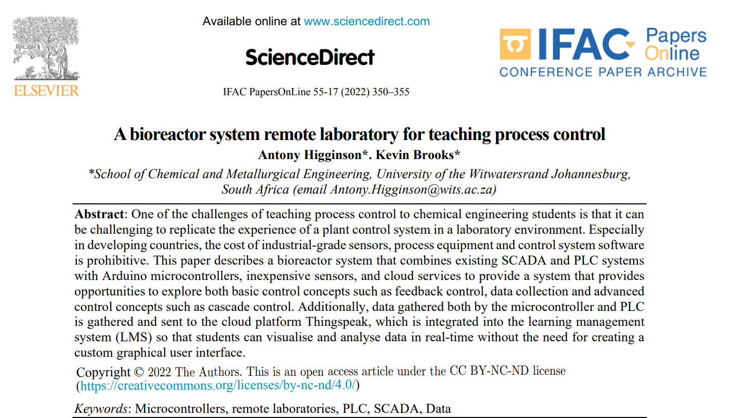 이 논문은 원격 공정제어 교육을 위해 **실제 100L 바이오리액터(마이크로브루어리 설비)**를 그대로 활용한 사례를 다룹니다. 시뮬레이터나 가상 데이터가 아니라, 현장에서 돌아가는 설비 데이터를 그대로 원격으로 다룬다는 점이 핵심입니다.
