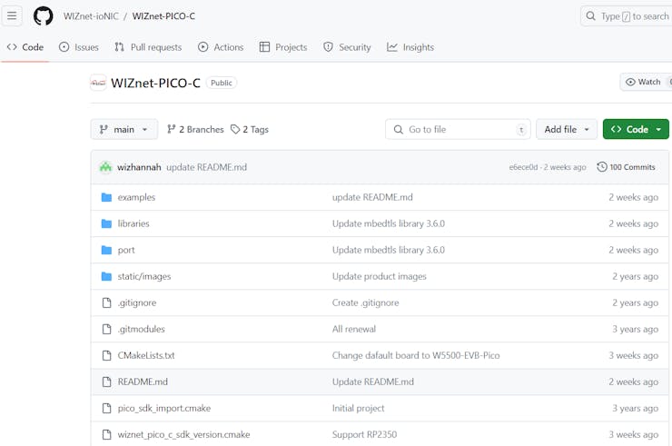 If you go into the collar, it looks like this, and it's called WIZnet-PICO-C. I think it's probably merged all of Wiznet's Pico Board.