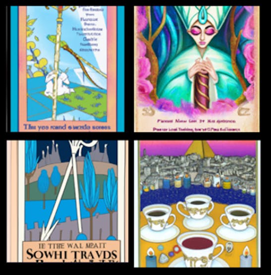 query = "4 random cards flipped on pamela colman smith rws tarot deck." \