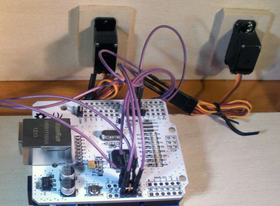 구성은 Arduino + Ethernet Shield + 서보 3개가 중심이다. Ethernet Shield로 네트워크에 연결해 데이터 피드에서 값을 가져오고, 가져온 값을 범위에 맞게 스케일링한 뒤 각 다이얼의 서보 각도로 매핑해 바늘을 움직인다. 구현 과정에서는 다이얼의 “0점(제로 포지션)”을 맞추는 보정 단계와, DHCP 실패 같은 네트워크 트러블슈팅 지점도 함께 다룬다.
