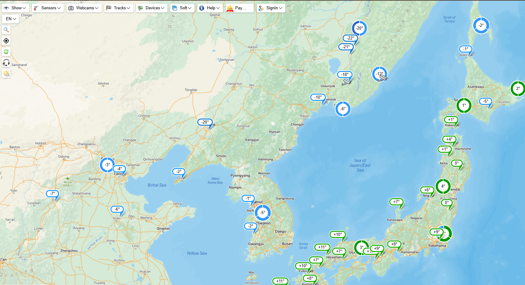 There is a Russian monitoring system that collects and displays weather sensors from around the world.
