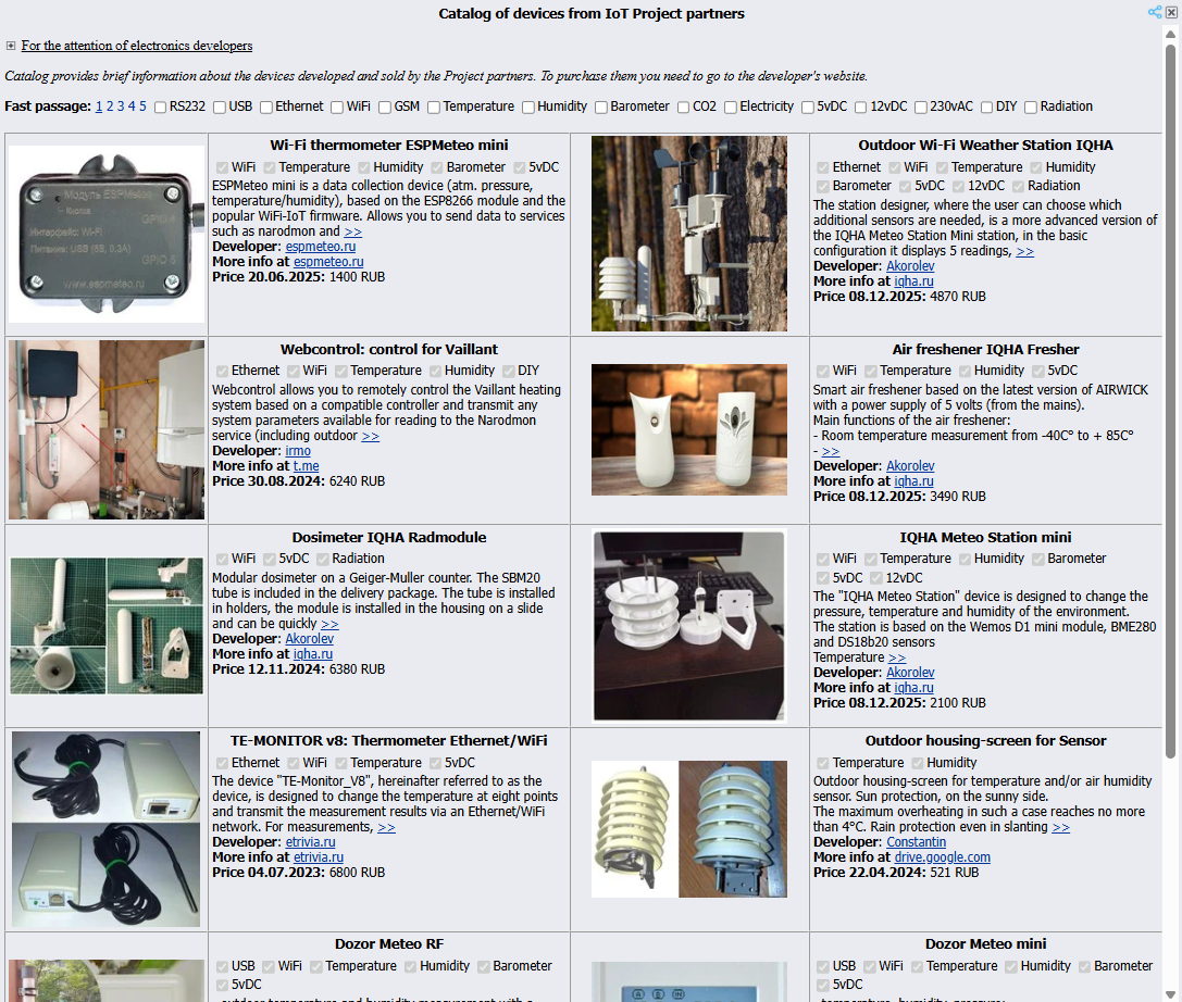 이 프로젝트는 WIZnet W5500을 사용한 DIY 기상 관측 스테이션으로, 수집된 온도·습도 데이터가 NarodMon과 같은 공개 모니터링 플랫폼에 실시간으로 전송되는 구조를 가지고 있습니다. 개인이 제작한 장치가 실제 서비스 플랫폼의 일부로 동작하는 것이 특징입니다.