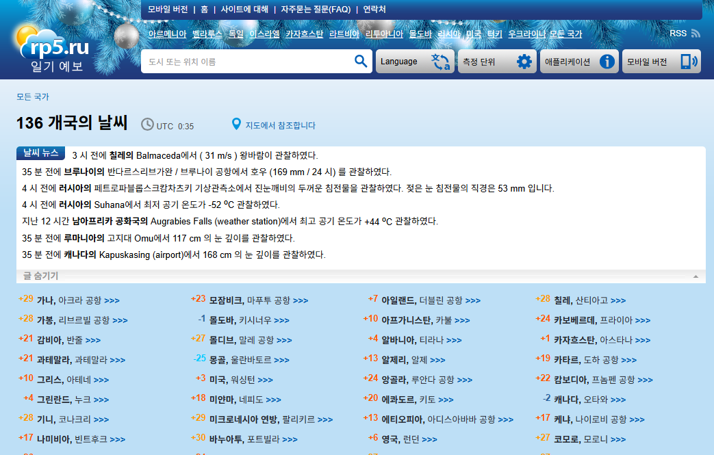 전 세계의 기상센서를 수집해서 보여주는 러시아의 Monitoring System이 있습니다.