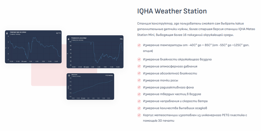 사용자가 필요한 추가 센서를 선택할 수 있는 스테이션 설계기는 16개 이상의 환경 측정값을 표시하는 IQHA Meteo Station Mini의 고급 버전입니다.