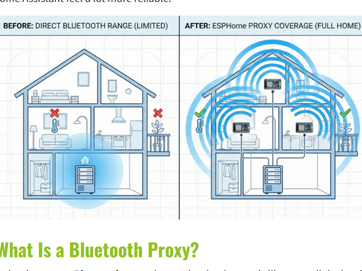 To overcome these limitations, ESPHome introduced the Bluetooth Proxy, which allows ESP32-based devices to act as distributed Bluetooth receivers and forward data to a central Home Assistant system.