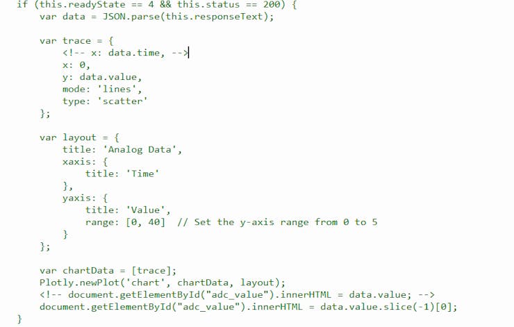 The x-axis is set to time. The y-axis is an analog value and is set to a maximum of 40.I received the data in real time and distributed it. Please check my collar for a detailed code.
