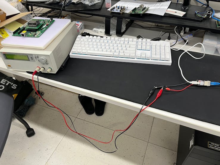 Now it's time to test. Enter power to Power Supply. Unfortunately, the supply I have can only output up to 31.5V.