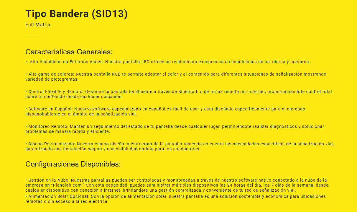 이 프로젝트는 플래그 타입 풀 매트릭스 LED 교통 표지판(SID13) 으로, 도로 환경에서 높은 가시성과 원격 제어 기능을 제공합니다.