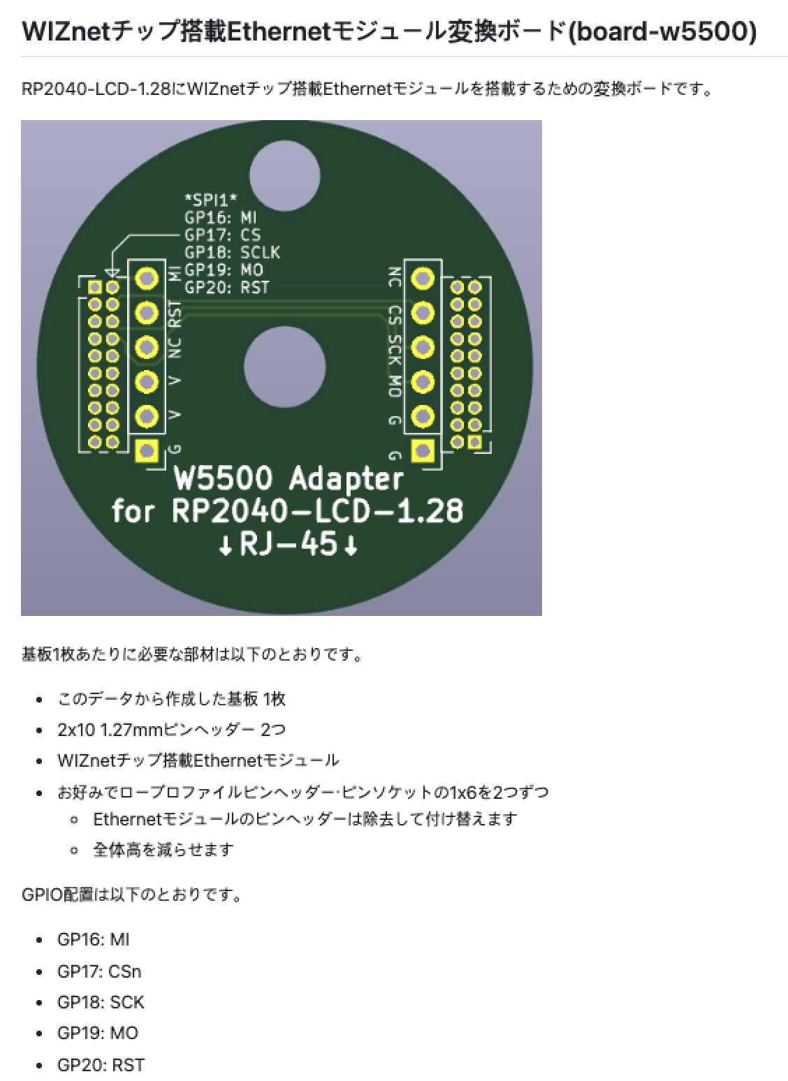 이번 프로젝트는 일본의 오픈소스 메이커로 활발히 활동 중인 Akihiro “akkiesoft” Suzuki 님이 설계하신 RP2040-LCD-1.28 전용 Ethernet 확장 보드를 소개합니다.