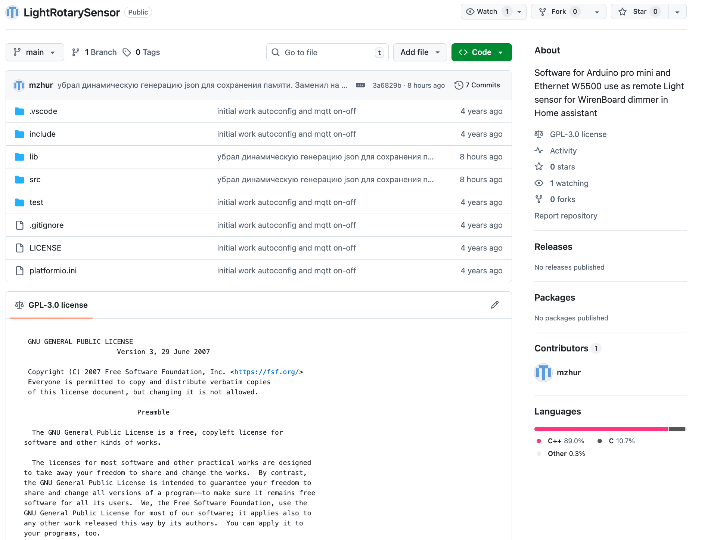 Software for Arduino pro mini and Ethernet W5500 use as remote Light sensor for WirenBoard dimmer in Home assistant