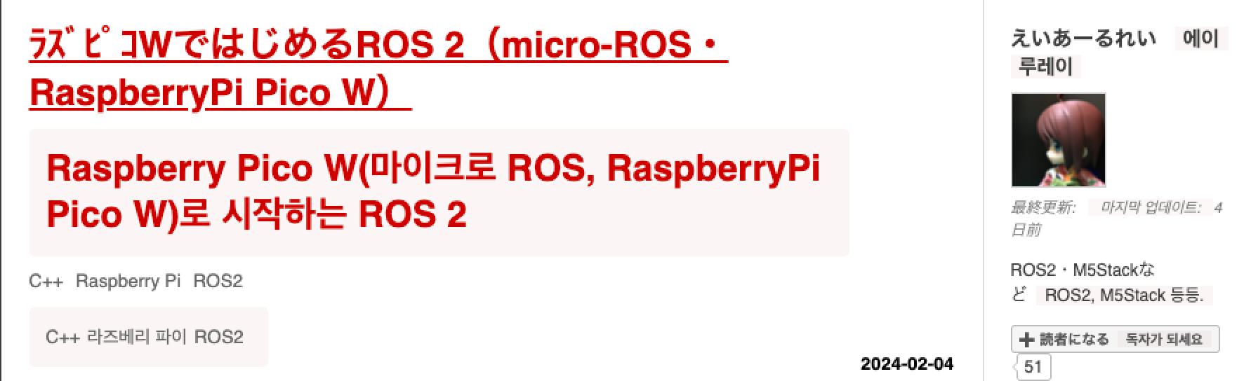 Original Project by NITKK-ROS-Team on GitHub 이 프로젝트는 NITKK-ROS-Team (일본 기타큐슈 공업고등전문학교)에 의해 관리됩니다. 주목할 점은 패키지 관리자가 micro-ROS 개발사인 eProsima의 Pablo Garrido로 등록되어 있다는 것입니다. 이는 기술적 신뢰도가 매우 높으며 공식 채택될 가능성이 큼을 시사합니다. 또한 Ar-Ray-code와 같은 커뮤니티 기여자들에 의해 활발히 지원받고 있습니다.