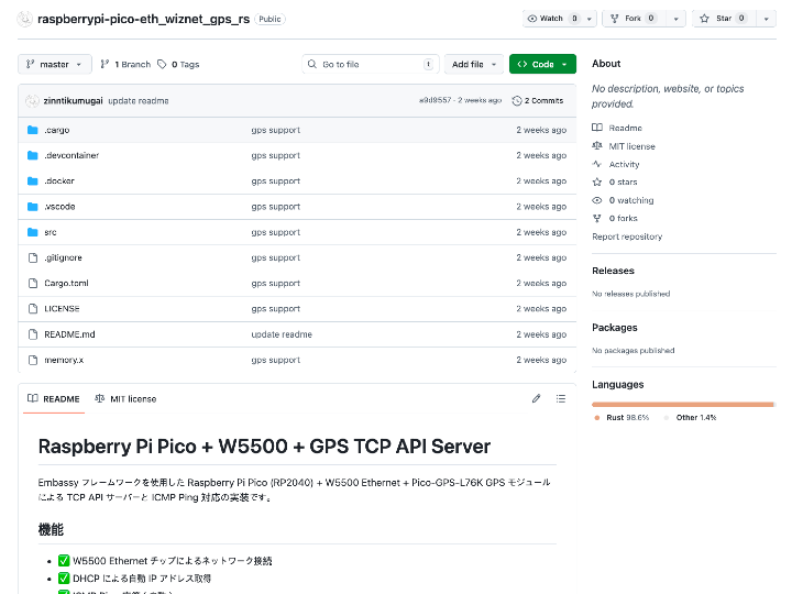 Embassy フレームワークを使用した Raspberry Pi Pico (RP2040) + W5500 Ethernet + Pico-GPS-L76K GPS モジュールによる TCP API サーバーと ICMP Ping 対応の実装です。
