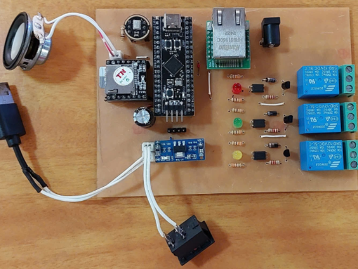 A PC-based voice control system that uses Python speech recognition and a W5500-enabled MCU to receive commands over Ethernet and control external devices.