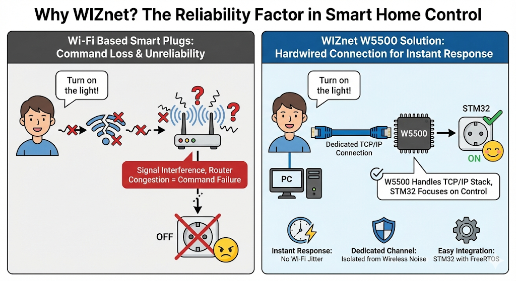 - The "Lost Command" Problem: In typical Wi-Fi-based smart plugs, voice commands often fail due to signal interference or router congestion. A user says "Turn on the light," but nothing happens for seconds, or not at all.