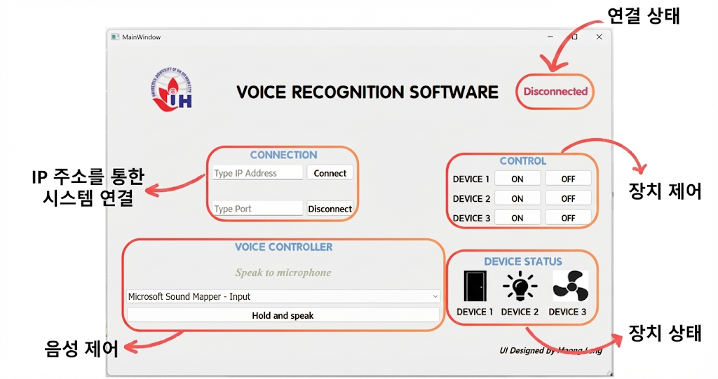 - 하드웨어 제어: STM32 마이크로컨트롤러가 전등이나 팬과 같은 물리적 장치를 직접 제어합니다.