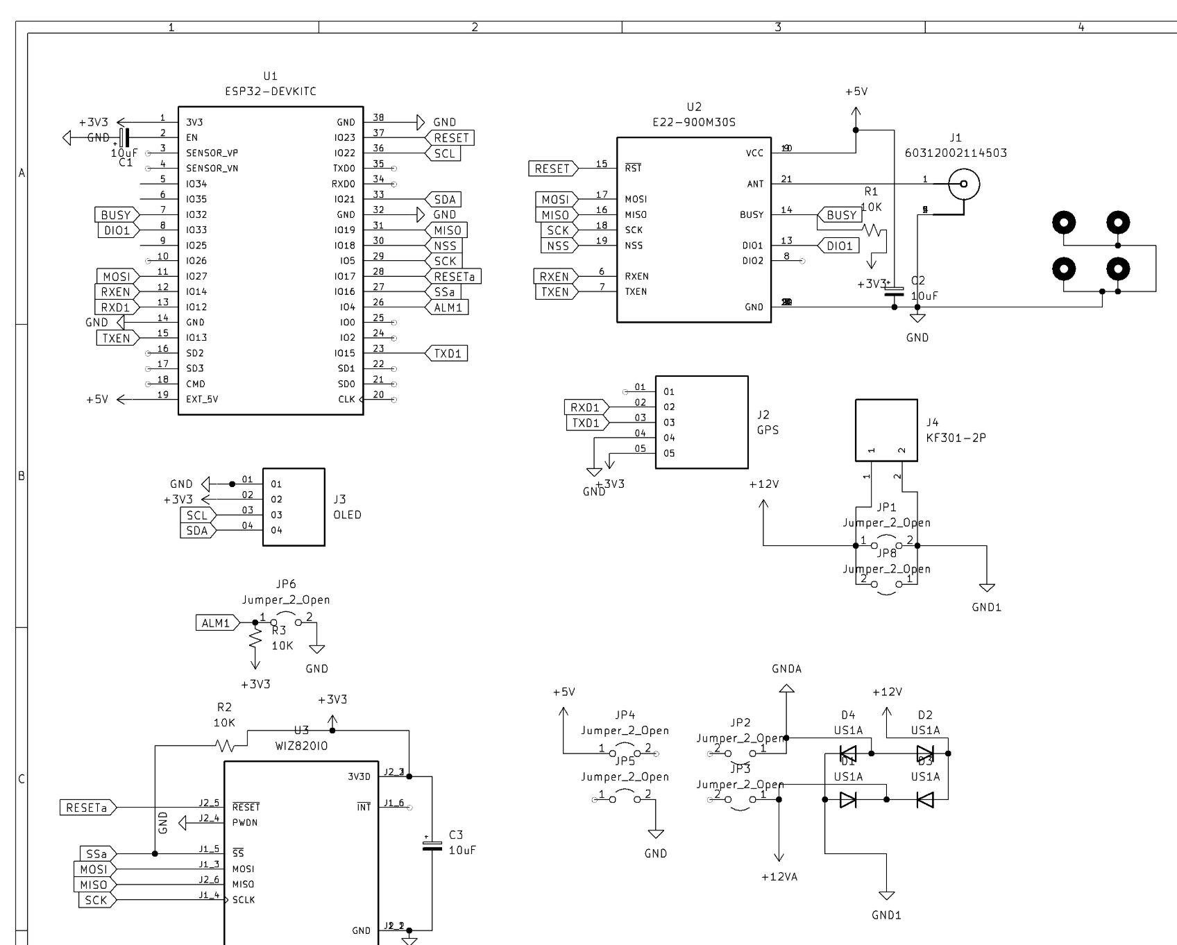 - LoRa 연결: EBYTE E22 모듈 기반, VSPI 버스 사용
